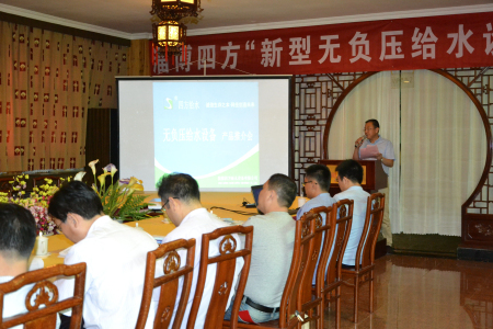 2016年6月13日,淄博四方“新型無(wú)負(fù)壓給水設(shè)備產(chǎn)品推介會(huì)”在濟(jì)南章丘召開(kāi)。會(huì)議有公共事業(yè)局、開(kāi)發(fā)商及用戶等單位蒞臨參加。