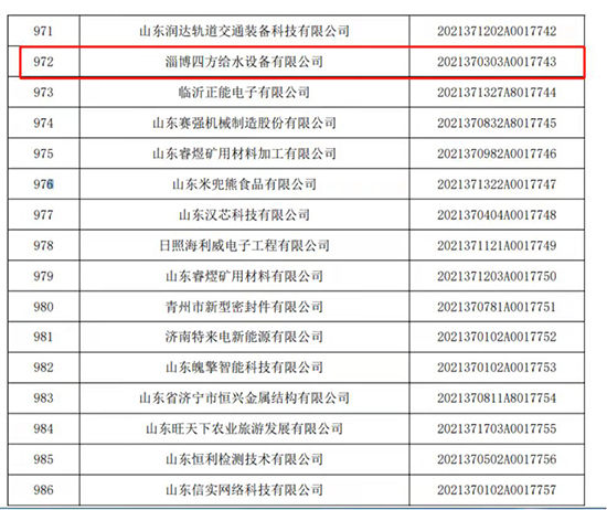 淄博四方入選山東省2021年第9批入庫(kù)科技型中小企業(yè)
